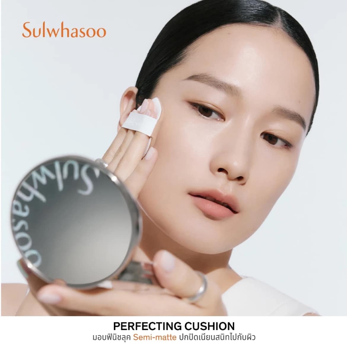 New Perfecting Cushion สูตร Semi-Matte มอบการปกปิดเนียนสนิทไปกับผิวมากกว่าเดิม ด้วยเทคโนโลยีสูตร Slim Fit Cover™ เอกสิทธิ์เฉพาะโซลวาซู เนื้อสัมผัสเกลี่ยง่าย ช่วยให้การกระจายอนุภาคของเม็ดสีมีความบางละเอียดสีผิวสม่ำเสมอ มอบความเบาสบาย ไม่หนักหน้า
